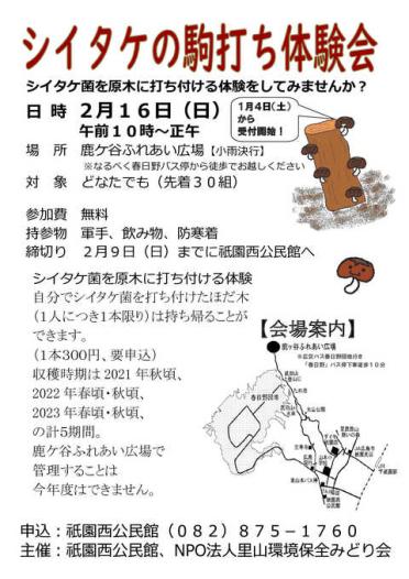 公開日:2020年02月18日シイタケの駒打ち体験会NPO法人里山環境保全みどり会 -