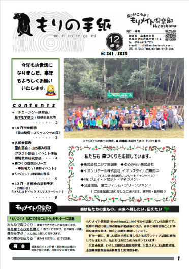 公開日:2025年12月01日団体からのお知らせもりメイト倶楽部Hiroshima12月会報についてもりメイト倶楽部Hiroshimaの会報「もりの手紙」2025年12月号が発行されました。
